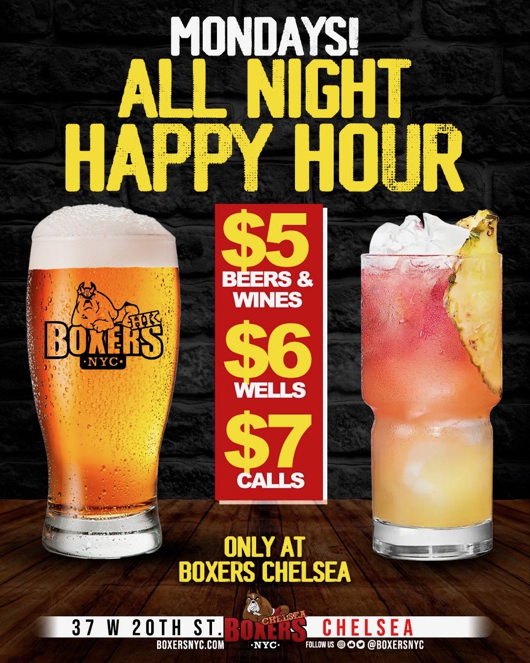 Happy Hour ALL NIGHT! Only on Mondays @ Boxers Chelsea