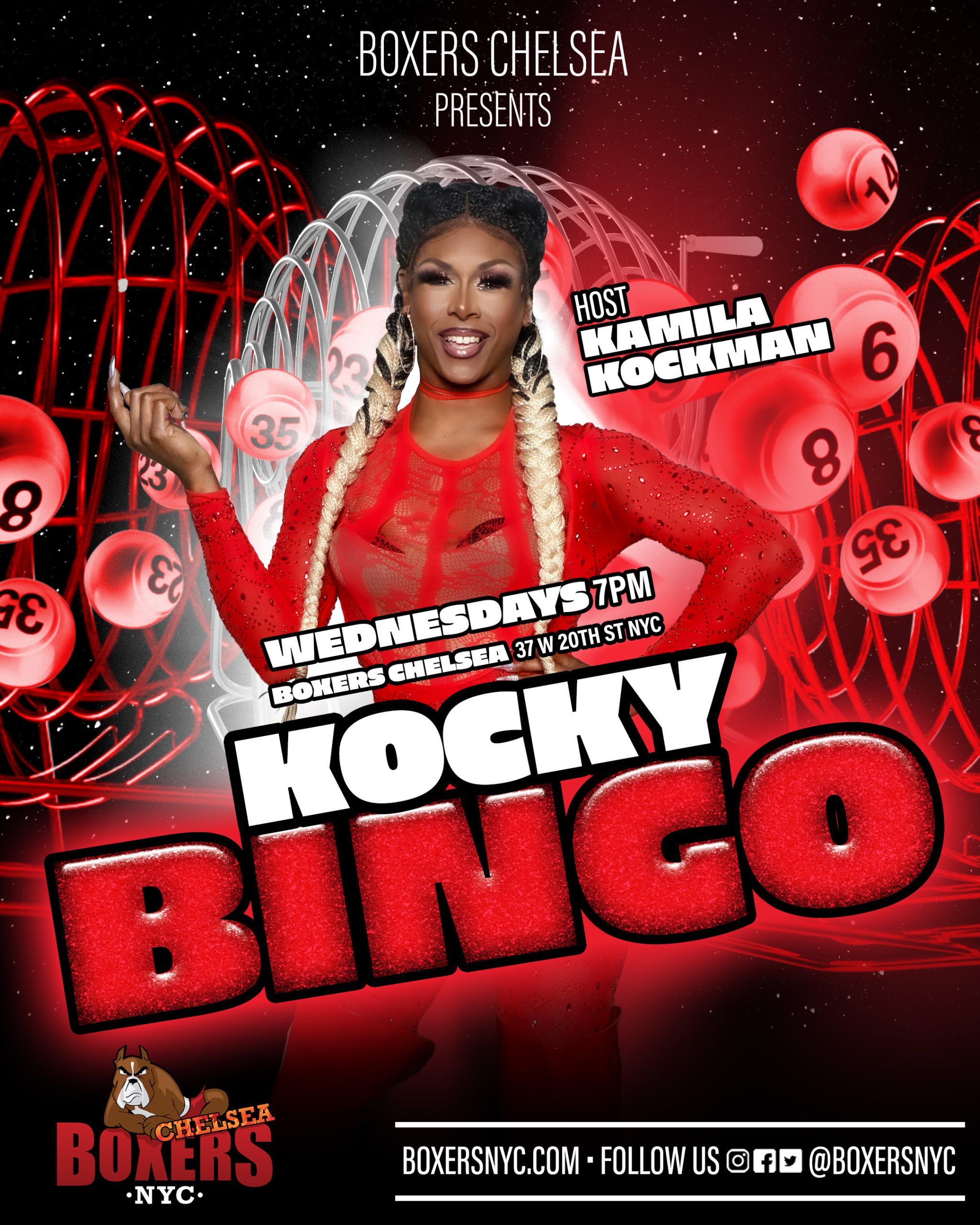 WednesdayFire Island Superstar Kamila Kockman hosts bingo with prizes every Wednesday.