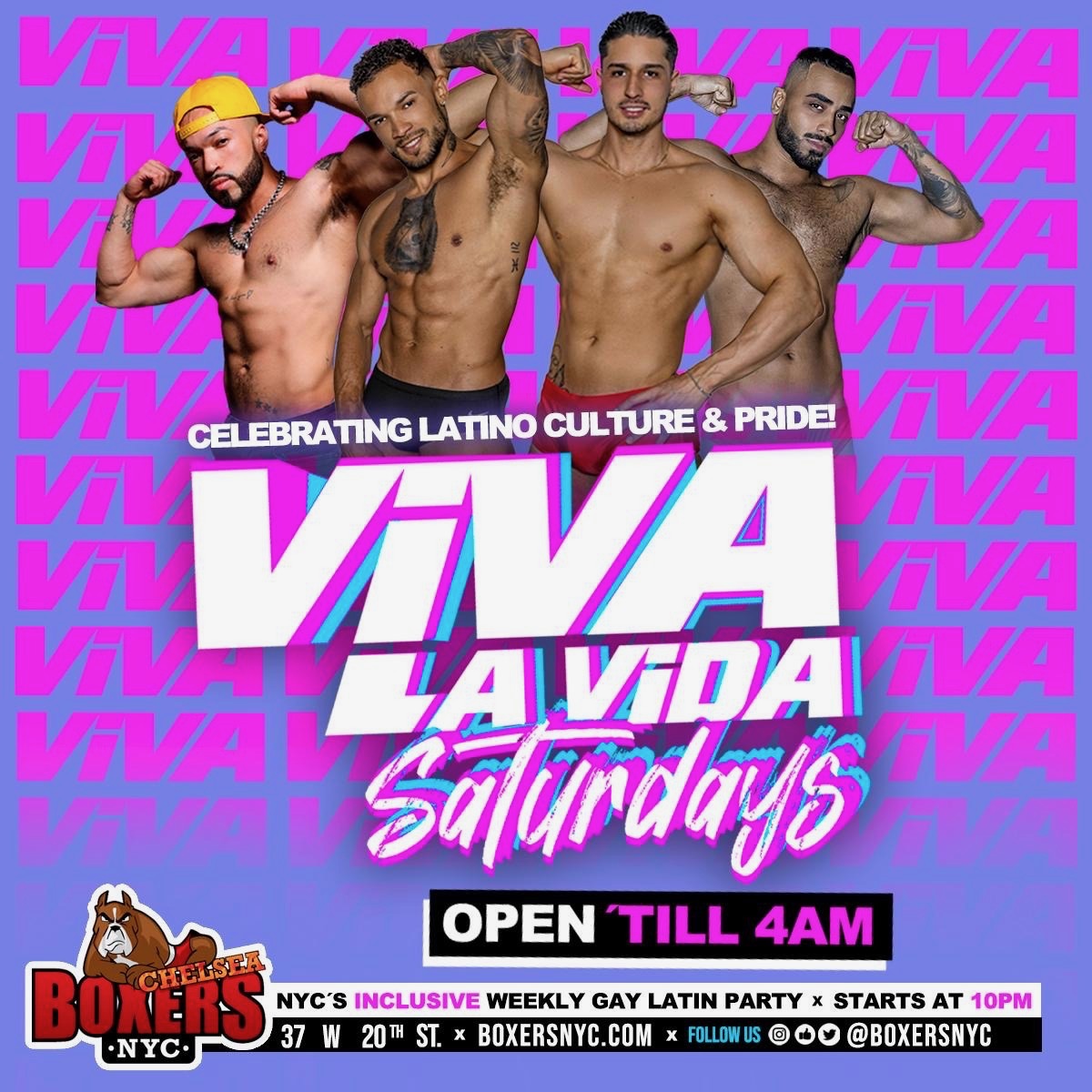 SaturdayViva La Vida Saturdays Celebrating Latino Culture and Pride. NYC’s inclusive weekly gay Latin party. Every Saturday @ 10pm