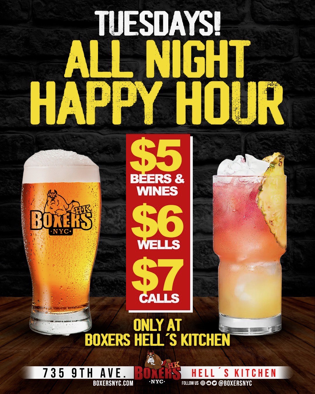 Boxers HK is Hell’s Kitchen’s go-to gay sports bar, with drink specials, LED screens to watch all of the games (including RuPaul’s Drag Race), along with beer on tap, pizza, private party room for birthdays and special events, and a gorgeous and spacious rooftop overlooking NYC. Come to celebrate NYC’s gay sports leagues, enjoy our nightlife offerings, or just hang with our friendly and renown boxers staff!