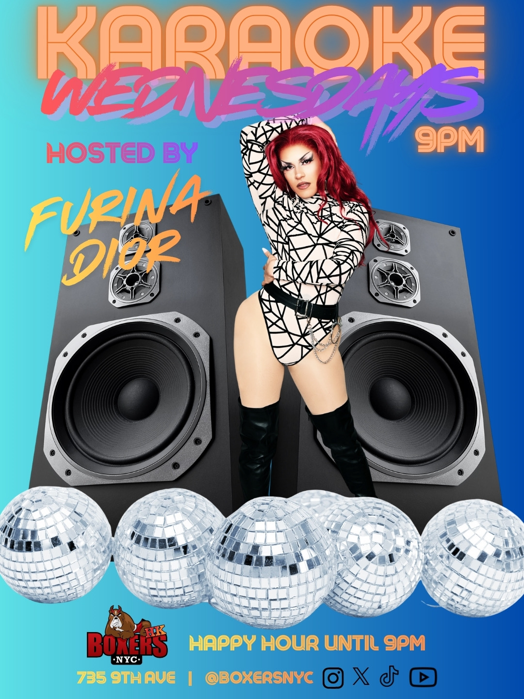 WednesdayKaraoke w/ Furina Dior Boxers HK’s weekly karaoke night hosted by Furina Dior. Happy Hour until 9pm!