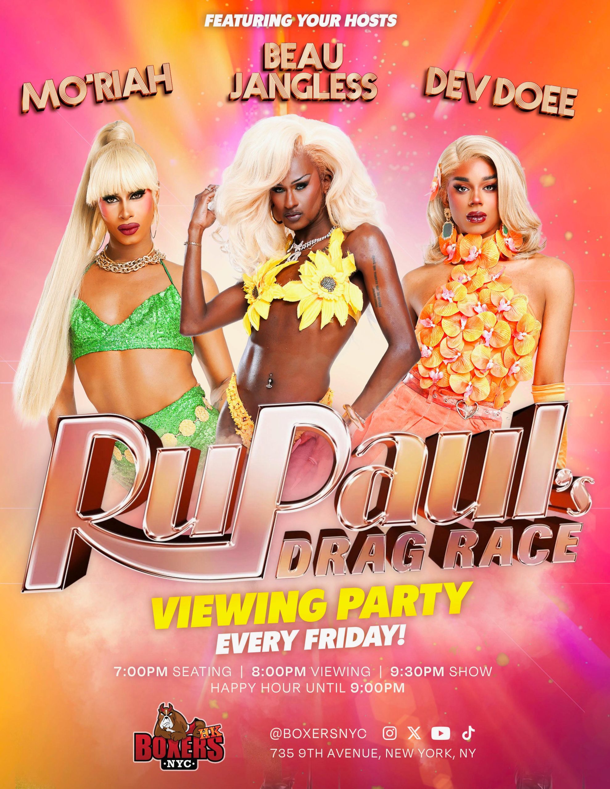 FridayRuPaul’s Drag Race Season 18 Viewing Parties Fridays New Episodes every Friday! Hosted by Mo’riah, Beau Jangless, and Dev Doee. 7:00pm Seating | 8:00pm Viewing Party | 9:30pm Shows – Stay for the Fantasy Factory!